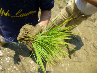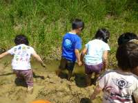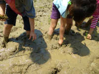 - 「生きる力」を育むための体験活動<田植えにチャレンジ(5才児)>