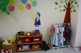 年少オリオンクラスの教室 ままごとコーナーのドレスアップや積み木が人気です。