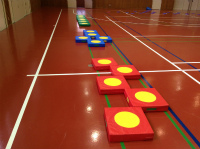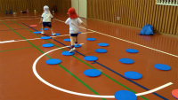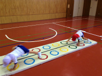 Jリーグアカデミー、筑波大学と共同開発した運動遊具で、開発段階で当校も協力をさせていただきました。不安定な状況を安全に与えることができる運動アイテムで、ボディバランスの発達や衝突・転倒時の危険回避能力を高めていきます。いろいろな活用方法があり、3年間継続して使用していくことにより成果を上げています。(効果測定済)