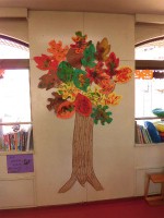 いろいろな手法で大きな秋の木を作ったり、色鮮やかで個性豊かな木を個々に作っていきました。