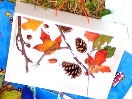 親子参加で秋の公園へ出かけました。おうちの人やたくさんのお友達、先生と一緒に、公園を散策しながら、どんぐりや色づいた葉っぱを拾いました。そして、持ってきた空き箱に“小さい秋”を表現しました。広場では、元気に走り回ったり、おいしいお弁当を食べたり、楽しい時間を過ごしました。