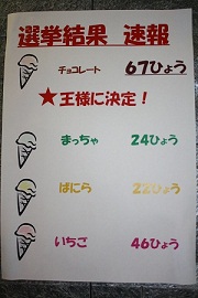 年長のお当番さんが開票しました。 さて、結果!は・・・今年の1位はチョコレートアイスでした。