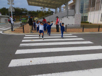 交通安全に関するクイズで知識を深め、施設内の市街地ゾーンで実際に交通安全の体験をしました。