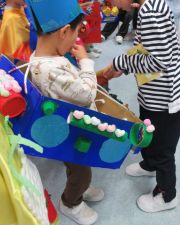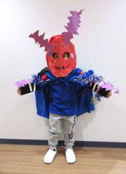 手作り衣装を身にまとい、「トリック・オア・トリート!お菓子をくれなきゃいたずらするぞ~!」と元気いっぱいに異学年のクラスを訪ねおどかしました。