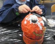 アートの授業では、お菓子を入れるためのジャック・オ・ランタンをモチーフにしたキャンディーバッグの制作を行いました。
