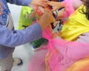 子どもたちは「自分がなりたいおばけ」を楽しくイメージを膨らませながら、衣装のデザインや使う材料を自分で考え、少しずつおばけの衣装を作っていきました。