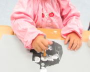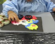 はさみやのり、絵の具、クレヨンなどの扱いにも少しずつ慣れてきて、安定して表現することができるようになってきました。そのため、時にはダイナミックに、時には形や色に意識を高めながら創作活動を楽しめるようになっています。