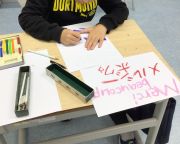 次は、いよいよ台詞を考えます。人形劇は、台詞だけで話の状況や登場人物の感情などを伝えなければなりません。「どうやったらこの状況がわかりやすく伝わるかな」と悩みながらことばを選んでいきました。何度も読み返し、それぞれの登場人物の感情に合った言葉遣いを考え、工夫を凝らしながらシナリオを作り上げることができました。人形や小道具についても、何が必要かを考えて、分担して作成しました。
