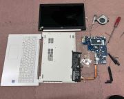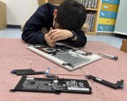 ノートパソコンの裏側のネジをすべて外すと、中には、触ると怪我をする恐れのある金具や部品がたくさんあり、より慎重に分解を進めていきました。